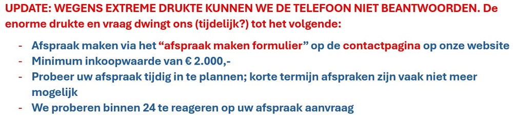 Onze inkoopprijzen altijd actueel en transparant, zo weet u altijd waar u aan toe bent. Onze prijzen zoals hier vermeld zijn ook werkelijk onze netto inkoopprijzen. Er worden geen kosten meer in rekening gebracht en er worden geen rare berekeningen toegepast. Geen verrassingen achteraf, u kunt zelf thuis al berekenen wat u van ons ontvangt voor uw goud en/of zilver. Daar staan we voor.